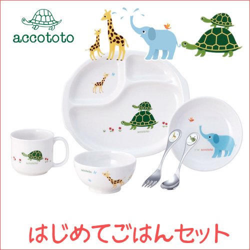 ニッコー 子供食器 アッコトト はじめてのごはんセット(ランチ皿、ライスボール、深皿、マグ) 8200-KS04C