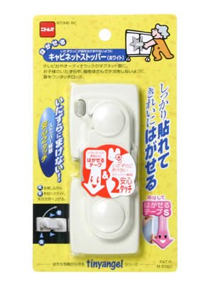 「はがせるキャビネットストッパー ホワイト」は、テレビ台などの両開きキャビネットに取りつけ、お子様のいたずらによる開閉や、ケガの防止に役立つドアロックです。しっかり貼れて、きれいにはがせる粘着テープを使用しました。2重ロック機構を採用。2ヶ所を同時に操作しなければ開けられず、閉めるときは、フックを掛けるだけで自動的にロックします。 販売元:ニトムズ