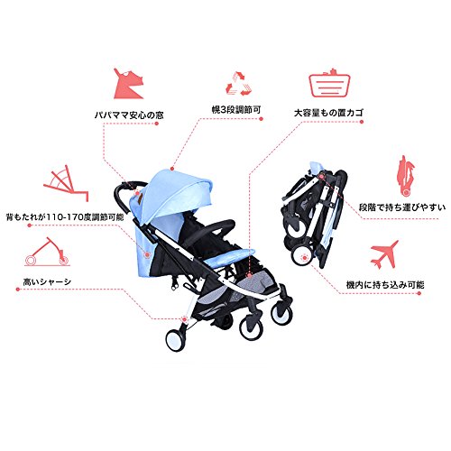 ベビーカー b型 バキ 折りたたみ式 コンパクト 片手収納可能 機内に持ち運び可(3 ライトブルー)
