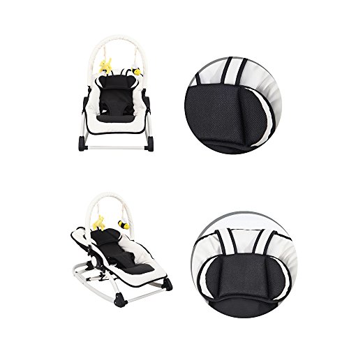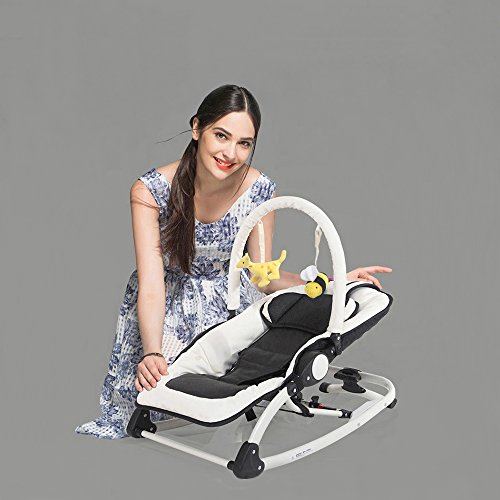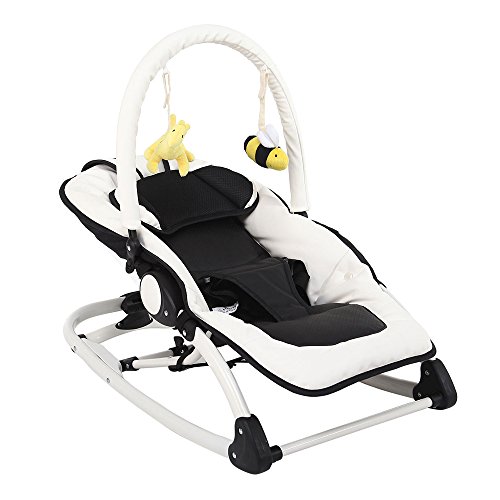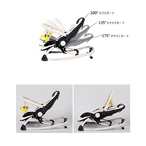 - 【機能性バツグン】イージーリクライニング機能、ロッキング機能、チェア機能、3点式ベルト付き、おもちゃ付き
