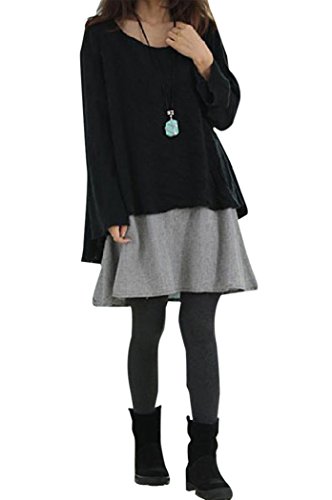 Aライン フレア マタニティ ワンピース 長袖 産前 産後 (01 ブラック M)