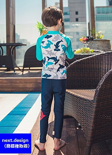 next.design 3点セット キッズ水着 上着 レギンス キャップ UPF50+ (L(身長130-140cm))