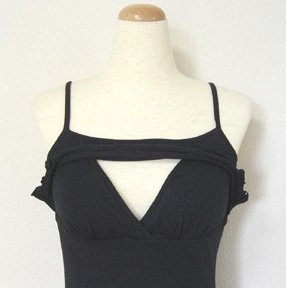 - ブラなしで1枚で着られる、カップ付きの授乳用キャミソール。