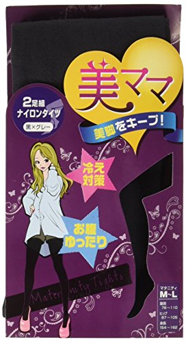 ネトゥル マタニティナイロンタイツ 黒色×灰色 2枚セット M-L グレー 3812