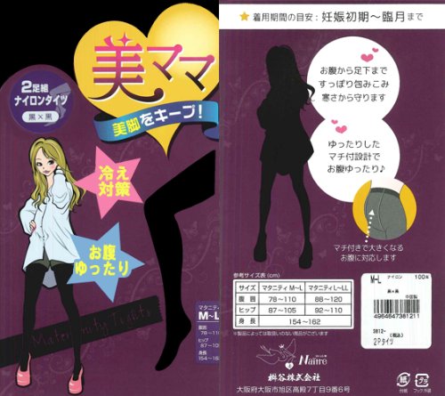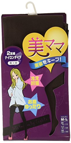 ネトゥル マタニティナイロンタイツ 黒色×茶色 2枚セット M-L ブラウン 3812