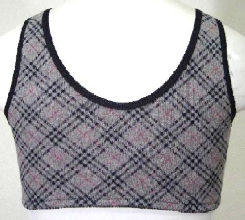 ネトゥル パッド付きバイアスチェック柄ハーフトップ L グレー 5824