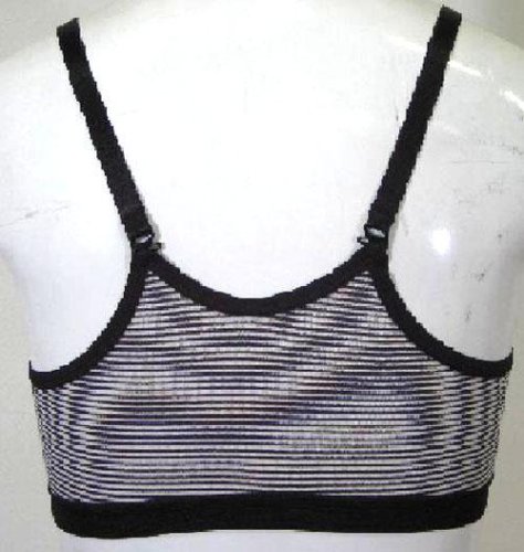 ネトゥル パッド付きボーダー柄交換ストラップタイプクロスオープンハーフトップ M ブラック 5823
