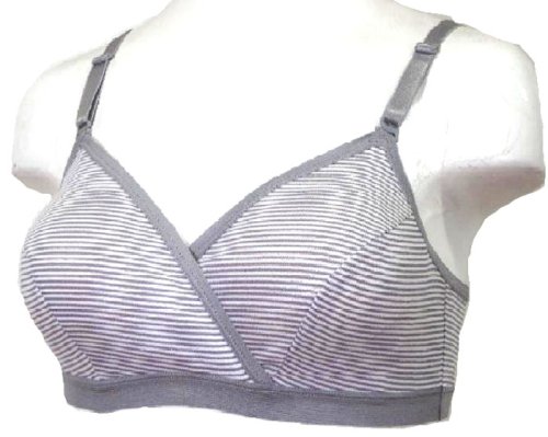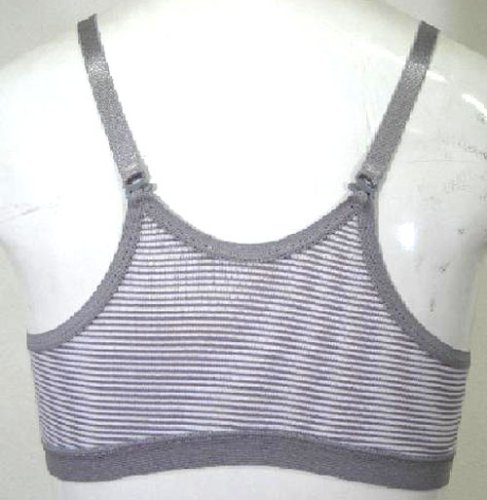 ネトゥル パッド付きボーダー柄交換ストラップタイプクロスオープンハーフトップ M グレー 5823
