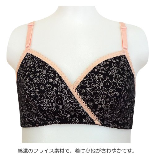 ネトゥル パッド付きアウトライン小花柄ハーフトップ M ブラック 5888