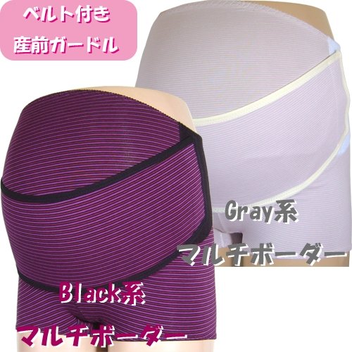 ネトゥル マルチボーダー柄ベルトコントロールマタニティガードル L ブラック 4831
