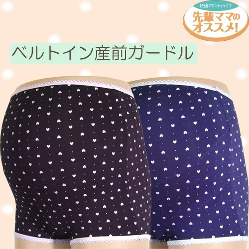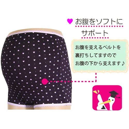 ネトゥル マイクロファイバーハート柄ベルト内蔵タイプマタニティガードル L ブラック 4832
