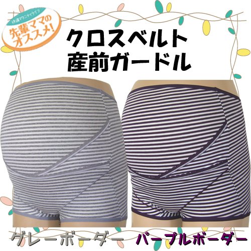 ネトゥル ベア天竺ボーダー柄クロスベルトマタニティガードル L グレー 4839