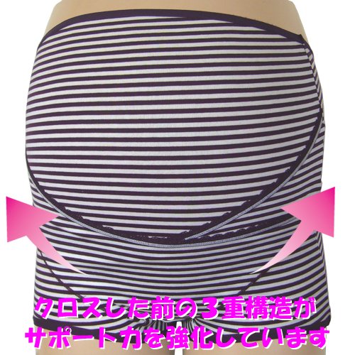 ネトゥル ベア天竺ボーダー柄クロスベルトマタニティガードル M パープル 4839