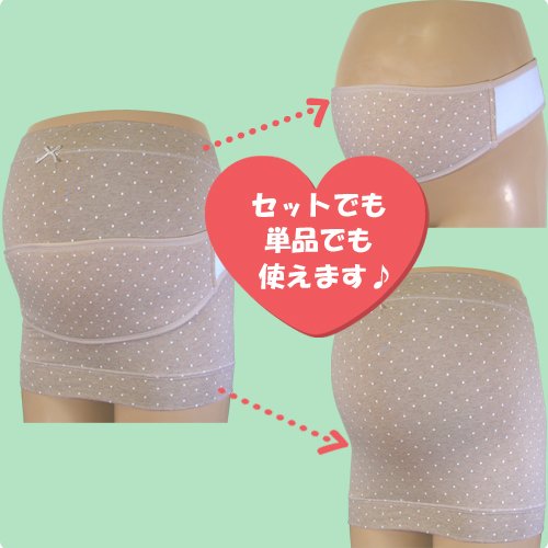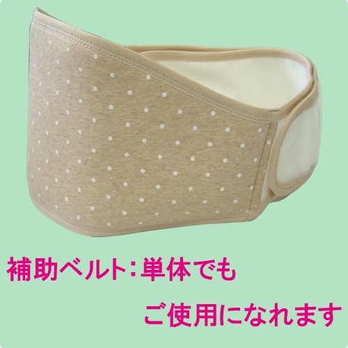 ネトゥル 杢ベア天竺ドット柄妊婦帯+補助帯セット M~L ベージュ 6055