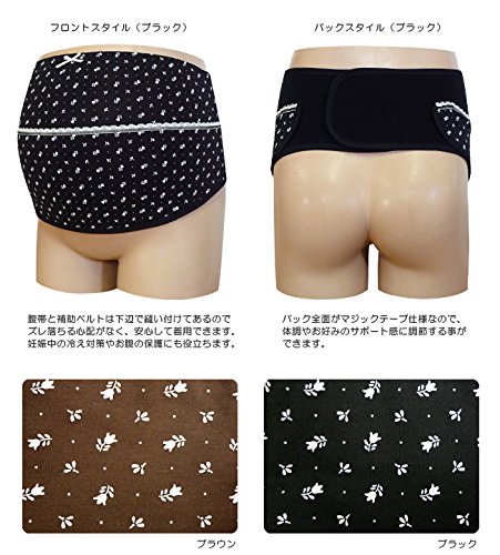 ネトゥル 小花柄 補助帯ベルト付きかんたん腹帯 マタニティ産前用 M-L ブラック 6029