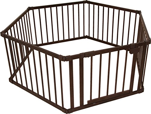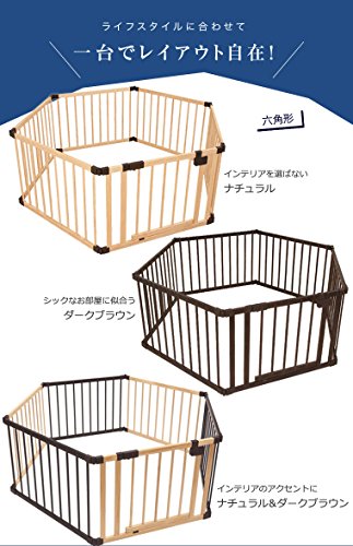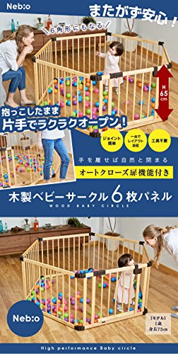 ネビオ 木製オートクローズドア付ベビーサークル 6枚パネル (ダークブラウン)