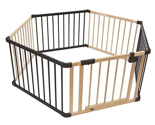 ネビオ 木製オートクローズドア付ベビーサークル 6枚パネル (ナチュラル×ダークブラウン)
