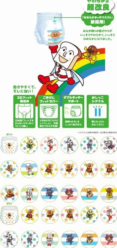 やわらかさ超改良!「なめらかタッチウエスト」採用でおなかまわりの肌ざわりがいっそうやわらかく、いっそうなめらかになりました。 体に沿って、立体的にフィットするから、モレに強い。見た目もすっきりの、「3Dフィット吸収体」です。 「ごきげんフィットラバー」で、大きめの子にもやさしくフィット。伸縮自在でおなか快適! 太くて見やすい「おしっこシグナル」を採用 【パンツ】 M(54枚)、L(42枚)、Big(38枚 1ケース 各サイズ3入り