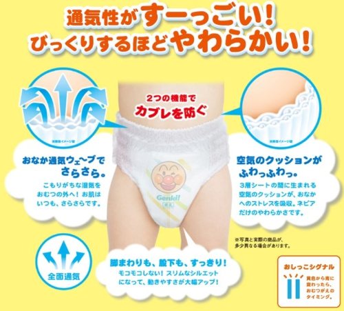 - トンネル状の空気の通り道を採用 おむつの中の湿気を外に発散 通気性が抜群 カブレを防ぎます