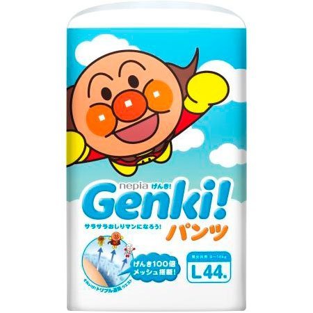 ネピア GENKI(ゲンキ) フィットするのにふわふわ通気 パンツ L・44枚*9入(3合せ)1パック999円(税別)