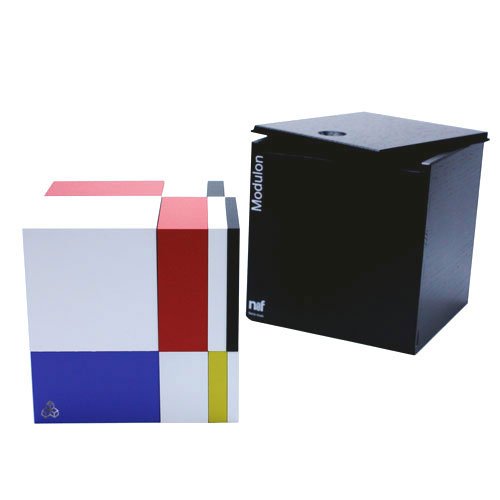 モデュロンは、古代ギリシャ時代から「調和的で美しい比」として建築や絵画、彫刻など様々な分野で取り入れられてきた黄金比で分割された積み木です。大きさの違う、7種16個のパーツで美しい造形を作り出すことが出来ます。スライド式の蓋が付いた黒い木箱入り。