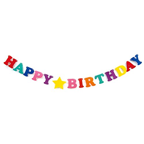 ●フェルト素材の柔らかいメッセージガーランド●≪特長≫●誕生日を華やかに彩るカラフルなフェルトのガーランドです♪ひも付きで簡単に「HAPPY★BIRTHDAY」の文字を通せるのでラクチン!パーティーの飾り付けの主役として壁や空間にどうぞ●≪仕様≫●【セット内容】・フェルト文字×14・ひも×1【サイズ】・全長:約115cm・紐:約200cm・文字:約8~10.5cm【材質】・文字:フェルト
