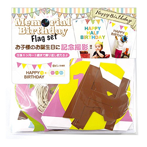 メモリアルバースデー ペーパーフラッグセット ピンクMIX