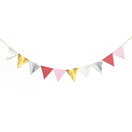 フェルトや紙、ゴールドやシルバーカラーの生地など異素材を組み合わせて作ったゴージャスなフラッグガーランドです。壁に飾るだけで一気に華やかな雰囲気に!ホームパーティーやイベントの装飾、インテリアとしてもオススメです