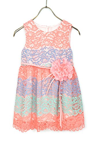 ガールズ刺繍模様のワンピースです サイズが豊富です。 130以上は5サイズずつ区切られていますが、サイズ表を目安に来年も着れるように大きめサイズをお勧めいたします。