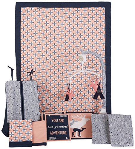 Bacati Olivia Tribal 10 Piece Nursery-in-a-Bag Cotton Percale Girls Crib Bedding Set, Coral/Navy [並行輸入品]