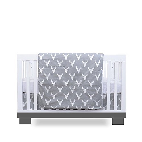 Simon's Baby House 100% Cotton 3 piece Crib bedding set Grey Deer Heads [並行輸入品]