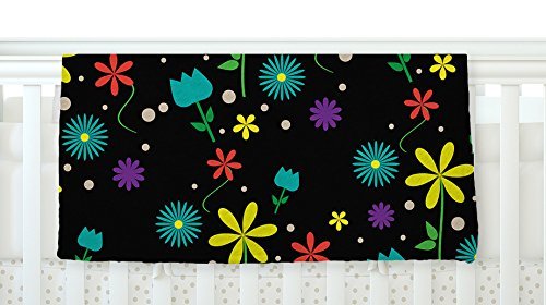 KESS InHouse Louise Flower I Black Multicolor Fleece Baby Blanket 40 x 30 [並行輸入品]