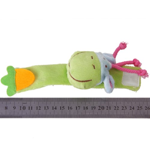緑の帯で非常にかわいいロバとソフトで快適な手首ガラガラ。ラトルは、着用することが容易になり、明るい色と楽しい音が目のcoordination.Thisガラガラに手に最適ですベルクロアタッチメントは、優れた品質のものであり、17cmsの測定と誕生+から適しています。