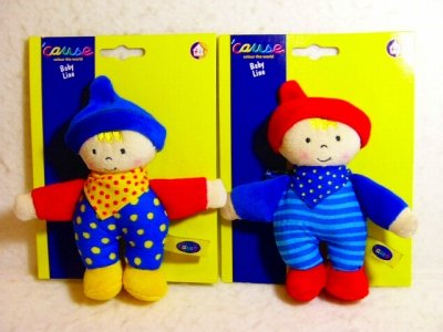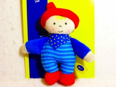 高さ約15cm。 服や帽子の色や柄は色々あります。
