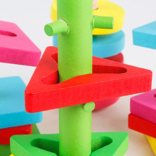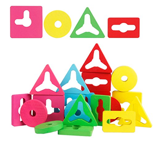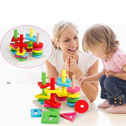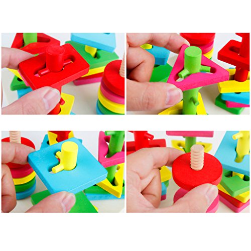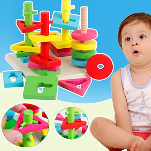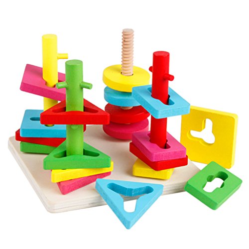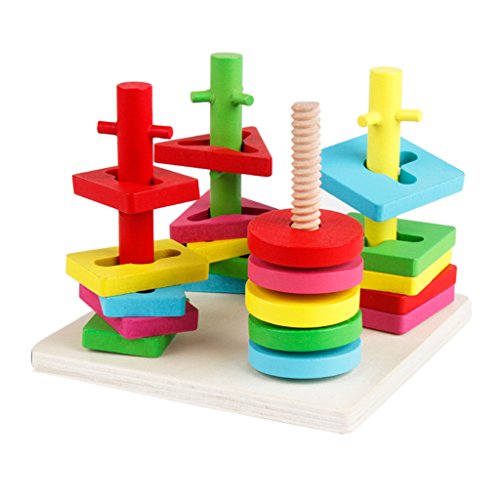 ノーブランド品 木製 4本の柱 幾何学 スタッキング形状 マッチング 積み木 赤ちゃん 知育玩具 贈り物