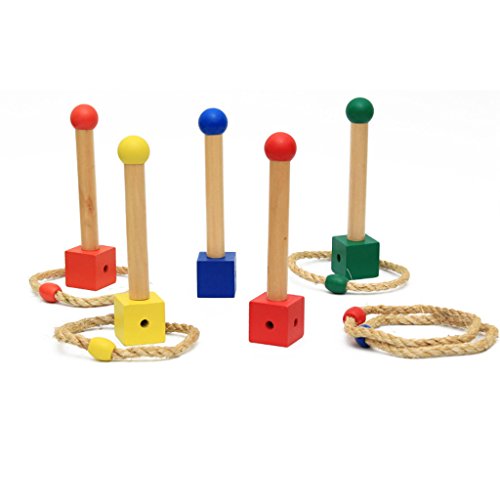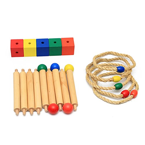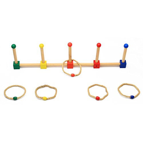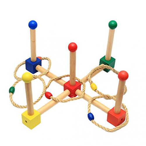 ノーブランド品 2セット 楽しいスポーツ 木製 リング トス ラウンドロープ 輪投げ 野外活動 ゲーム おもちゃ 贈り物