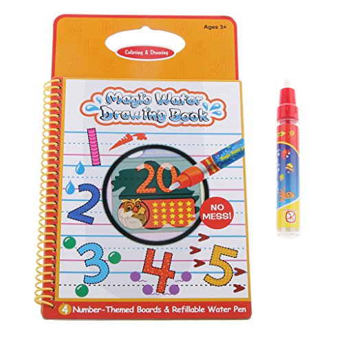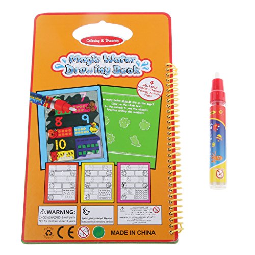 ノーブランド品 知育玩具 繰り返し使う 水ペン らくがき帳 創造性と想像力 子供 ギフト 全6パタン - 番号, (縦x幅x高さ)25.3x15x0.7cm