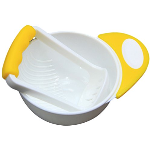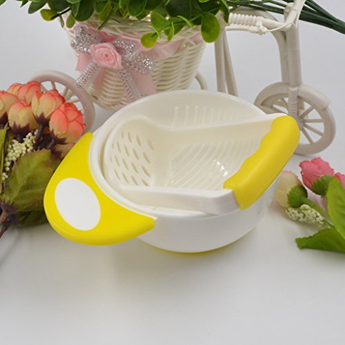 ノーブランド品 全4色 手動 キッズ フード フルーツ 離乳食調理器具 ハンドル 研削ボウル ロッド - イエロー