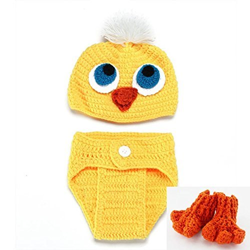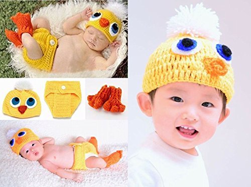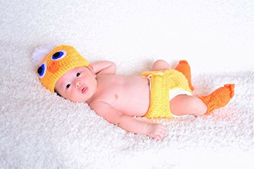 ★★輸入オーダー品です。2-4週間のお時間をいただいています★★ご家庭での年賀状用の撮影に、スタジオ撮影におススメです★★★ 基本的に0-3ヶ月くらいを推奨いたします。 御写真の小さなベビーちゃんは生後1か月以内のベビーちゃんです。大きな男の子は、2歳前後です。 基本セットは----ニットおむつカバー、鳥の足については3ヶ月以内くらいまでのフィッティングです。 ニット帽は伸びますので、一応2歳までいけることが確認できましたが、大き目のお子様にはフィットしませんので、基本的に小さなベビーちゃん用の衣装としてお考えください。 ★基本セット★帽子&ブルマ&あしのセット ブルマと足は3-4か月くらいまでしか確実にはいりません。帽子は2歳くらいまでぎりぎりいけます。 ★別売りオプション★-----黄色のフリルボディ&スカートのセット伸縮性の素材で、首すわり~2歳まで着用可能です。フリルは切りっぱなしのチュールで、繊維の粉が落ちます。フローリングなどではわかりにくいのですが、黒など色の異なる布の上やママの服につくとコロコロが必要です。ご理解お願いいたします。
