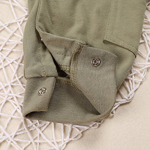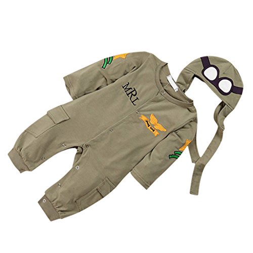 - 黒とゴールドのアクセントとコーディネートキャップ付き愛らしい、 オリーブグリーンのパイロットスタイルのボディスーツ。