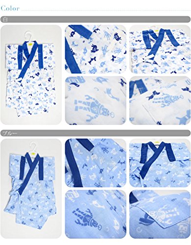 ベビー 甚平 二重ガーゼ 男児 ロボット柄 A白 2-4才用 80cm