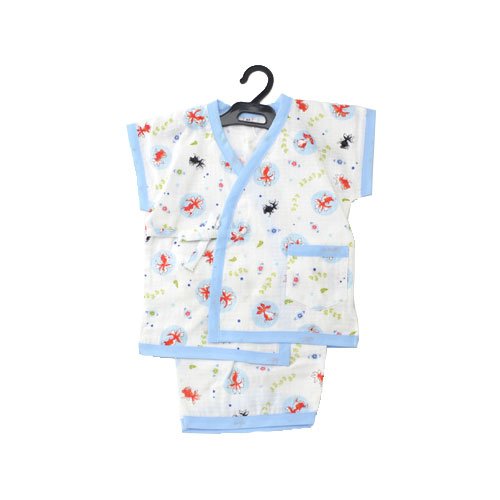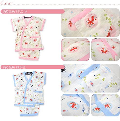 ベビー 甚平 二重ガーゼ 綿紅梅 丈短タイプ 踊る金魚柄 踊る金魚 衿水色 80cm