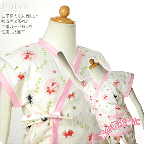商品説明 季節:夏・盛夏・年中 注意:画面上と実物では多少色具合が異なって見える場合もございます。ご了承ください。 備考:お子様の肌に優しい吸収性に優れた二重ガーゼ織りを使用した甚平です。綿紅梅タイプです。丁寧に日本で染め、縫製をした物です。夕涼み会やお祭りの時はもちろん、部屋着やパジャマとしても可愛いです。ビックリお目々の金魚達。ひらひら踊っているようです。