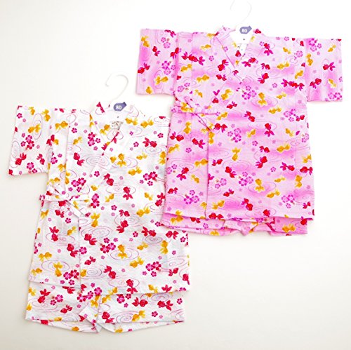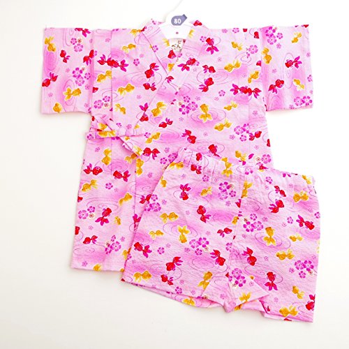 日本製 甚平スーツ 祭り 女の子 金魚 80cm/90cm/95cm(720925) (80cm, ピンク)