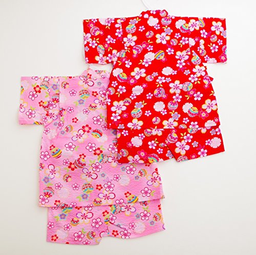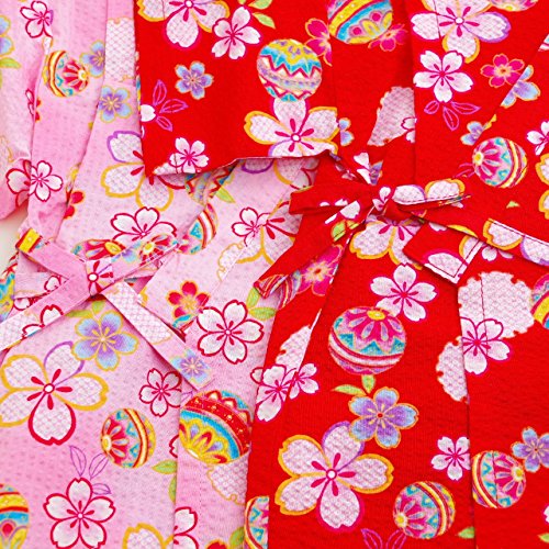 日本製 甚平スーツ 祭り 女の子 手毬 80cm/90cm/95cm(720915) (95cm, レッド)