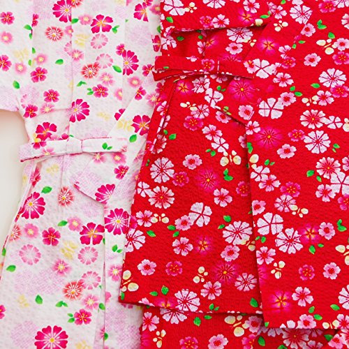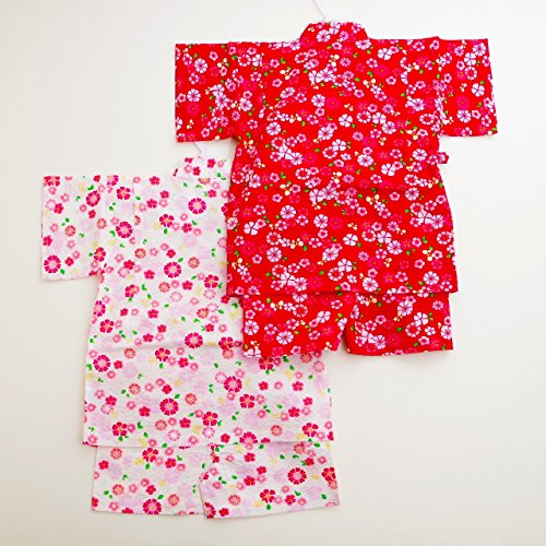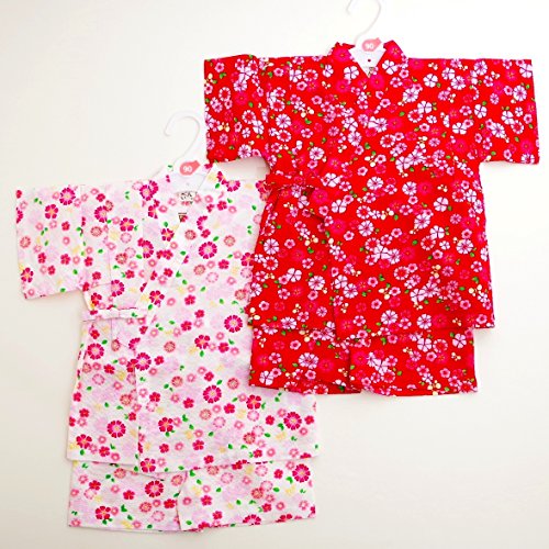日本製 甚平スーツ 祭り 女の子 花 90cm/95cm(720912) (90cm, レッド)