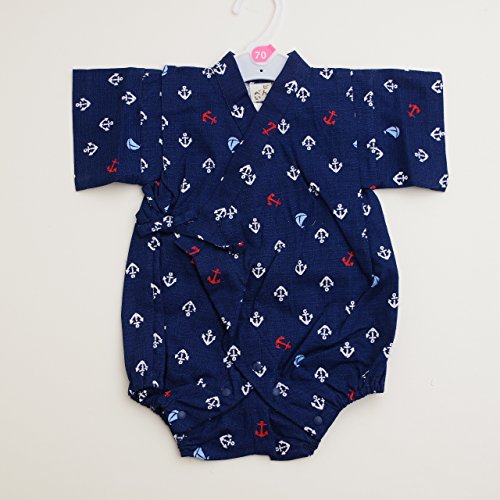 日本製 甚平ロンパース 男の子 イカリ 70cm/80cm (720906) (80cm, ネイビー)