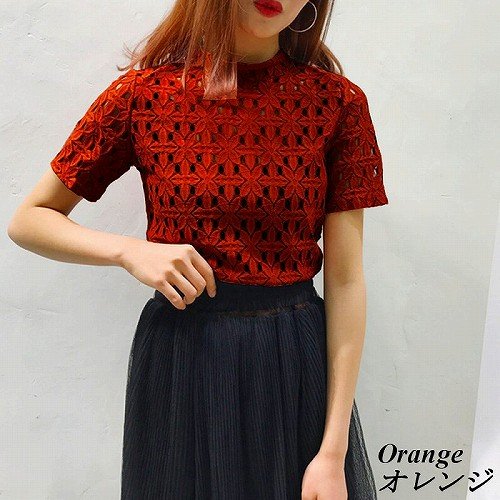 サイズ・容量 透け感がオシャレなフラワートップス☆ 女性らしいラインが上品なアイテム☆ ボトムスを選ばない万能アイテム☆ 伸縮性 なし 裏地 なし 透け あり ※インナーはついておりません。 カラー ブラック オレンジ サイズ 着丈47肩幅35袖丈20バスト84裾幅43 規格