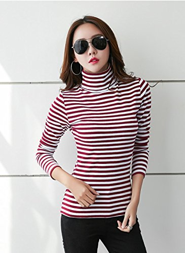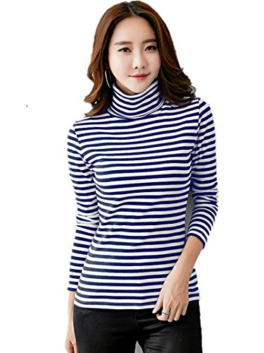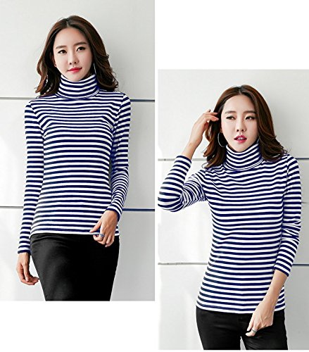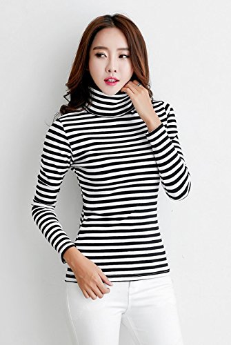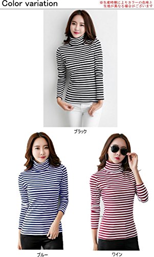 ボーダー カットソー タートルネック プルオーバー トップス 長袖 ブラック,L(アパレル)