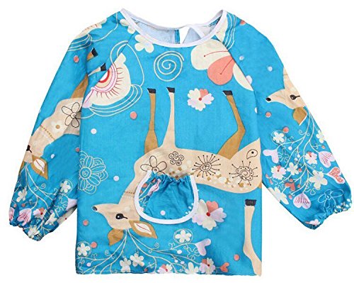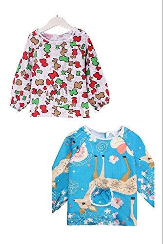 幼児 エプロン ベビー 長袖 スモック 食事用 お絵かき用 泥遊び用 1-2歳 2点組み合わせ (3)